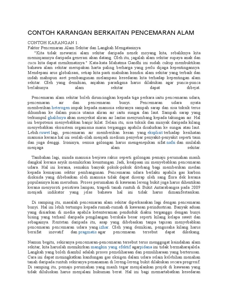 Contoh Karangan Berkaitan Pencemaran Alam Pdf