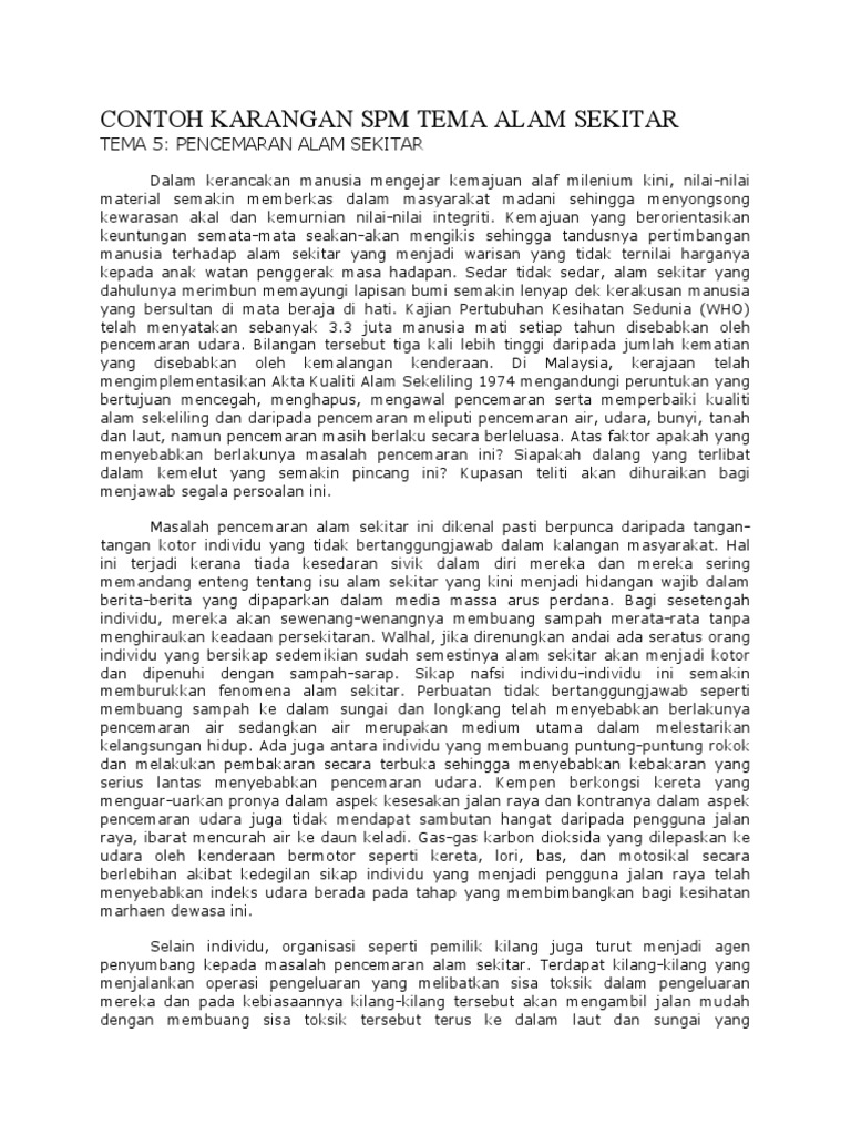 Contoh Karangan Spm Tema Alam Sekitar Pdf